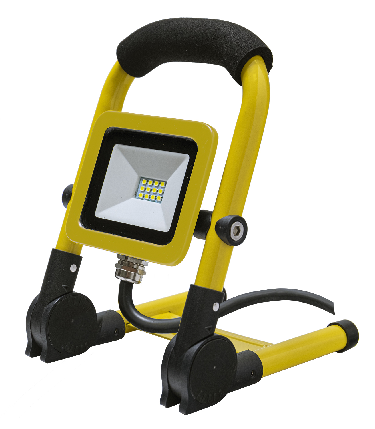 30,000 Hours super bright LED life- CCT: 6500K- IP65 Rating weather resistant- Sealed die cast aluminum housing- Adjustable tilting head- Cushioned carrying handle- Impact resistant lens